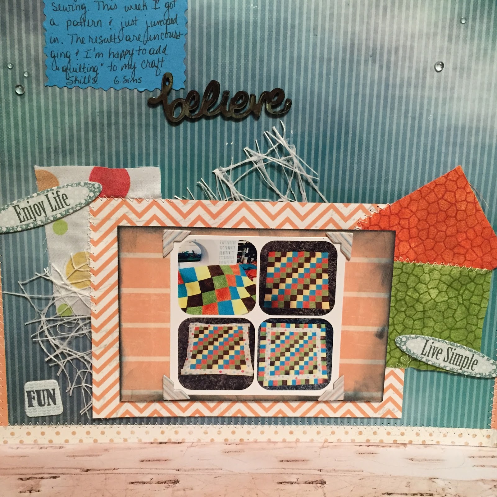 I cannot stress enough how happy it makes me to create things and I am so happy to have a new way to create by being able sew things and quilt.  I wish I'd been doing it forever, but I'm happy I started at all. I encourage you to start doing whatever it is you would like to do, today!!! I have learned to knit, crochet, paper craft, and sew...in the last 5 years! I keep telling anyone who will listen that I am so happy I started seeing because there's this whole world of fabric and patterns that I have access to now! I am really enjoying sewing and I look forward to improving as I keep working! Tomorrow I will be posting a video about making inked backgrounds for your layouts, happy crafting!