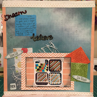 Today's page allowed me to use a variety of my tools including my Minc, my Big Shot, and my sewing machine, it was nice to blend so many crafts to make one thing. To make the "Dream" and "Believe", I die cut the shapes from toner paper and then from fun foam. I ran the toner paper cuts through my Minc using two colors and then glued them to the fun foam for some dimension. This was a very fun page to make and the colors worked perfectly with the fabric I was using for my quilt. I hope this inspires you to scrap a hobby or interest as well.  Thank you for stopping over.