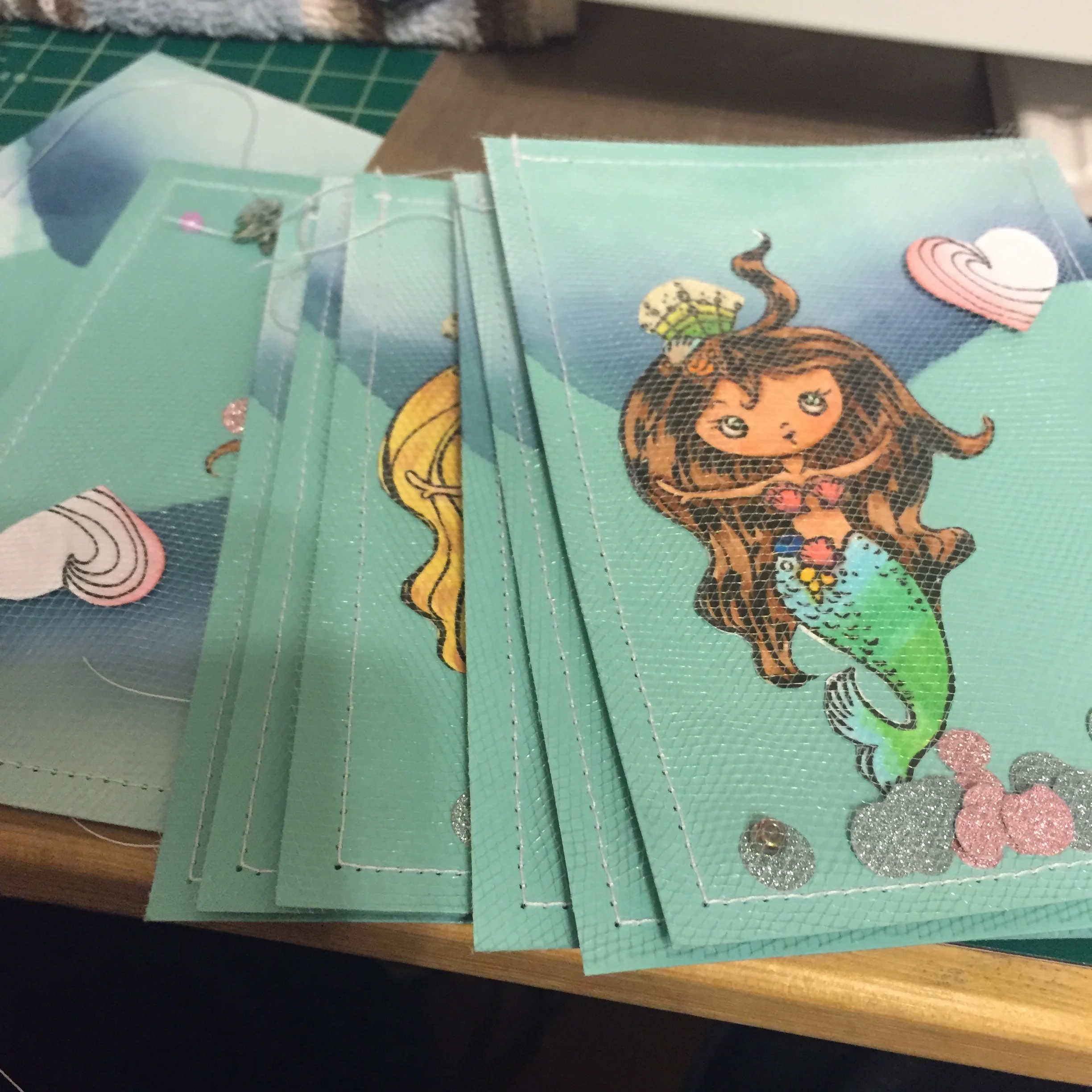 I started by stamping all of my mermaids and coloring them, and then fussy cut them all.